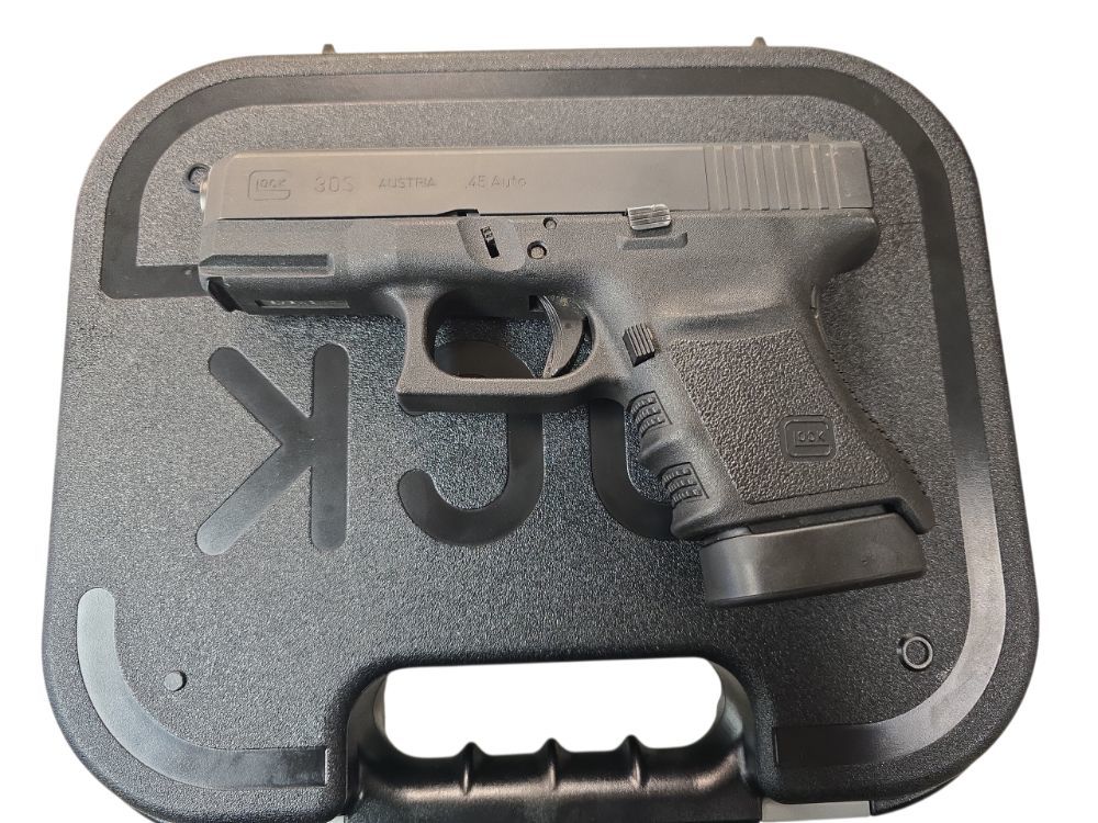 An embodiment of sleek power and precision, the semi-auto Glock Pistol in a magnificent .45 Cal commands attention.