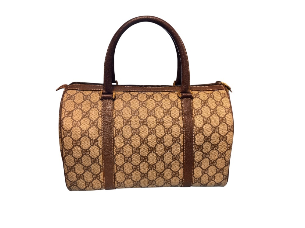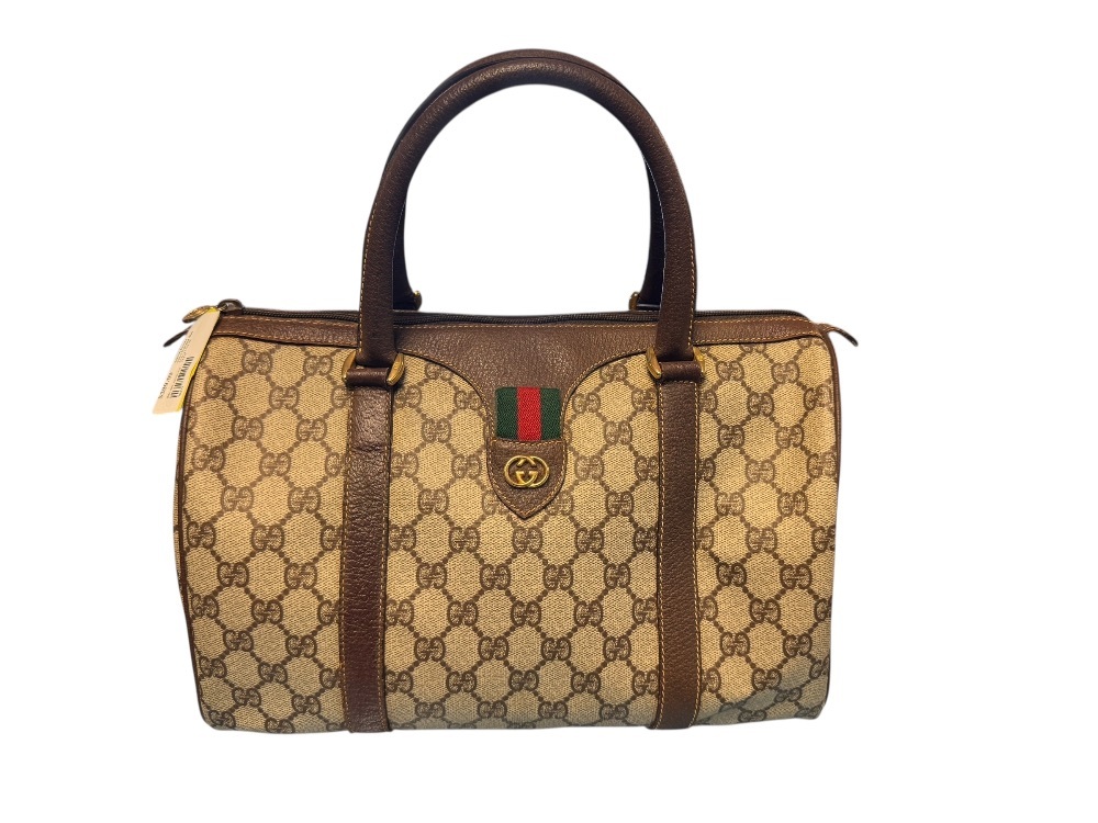 | Discover a luxurious touch of vintage sophistication with this Gucci Supreme Web Sherry Line handbag. Strut your stylish emblem with an interior and exterior rated 8/10, revealing slight signs of love and adventure. The leather tabs exhibit a hint of wear, telling an elegant story of style journeys. With a solid structure built to last, this bag is more than an accessory - it's your fashion comrade. An enchanting blend of elegance, durability, and design finery. This masterpiece is not just an essential component in your wardrobe but a statement of your exquisite taste. A pre-loved elegant companion yearning for new fashion escapades. You can't resist this vintage Charmer! |