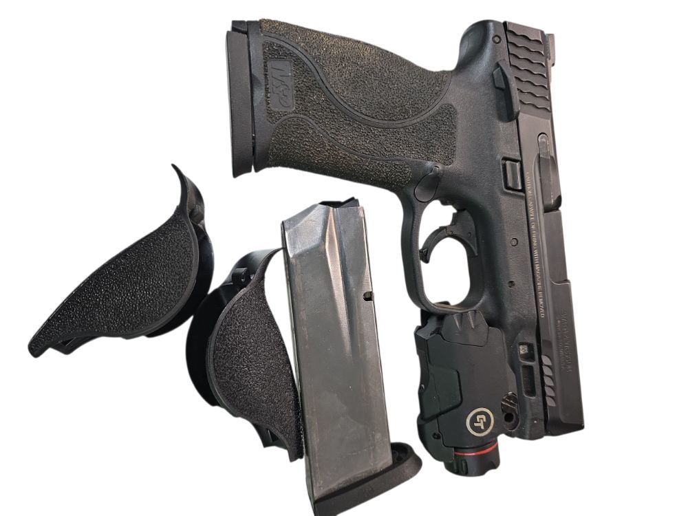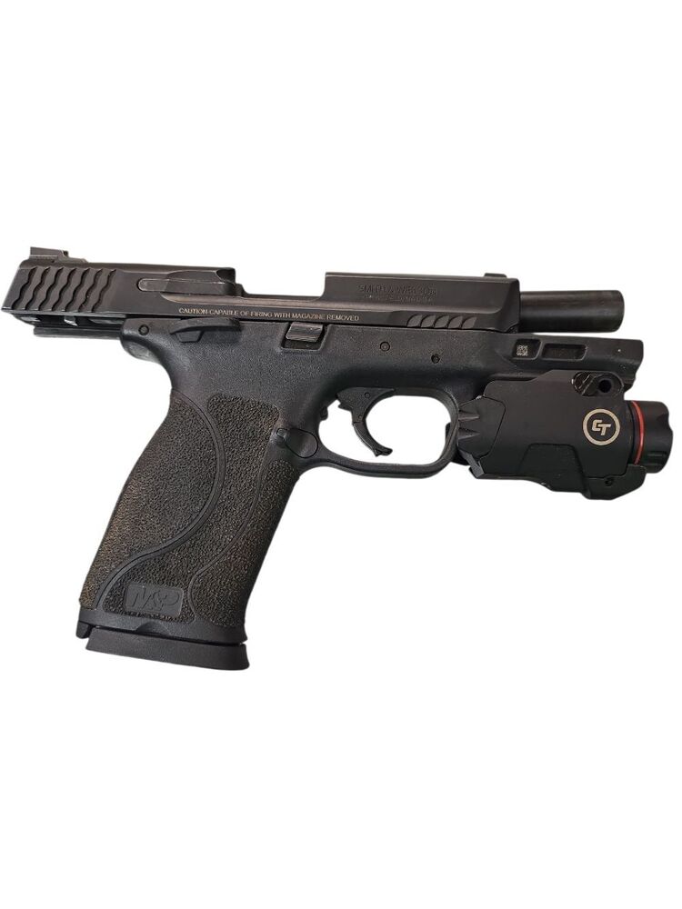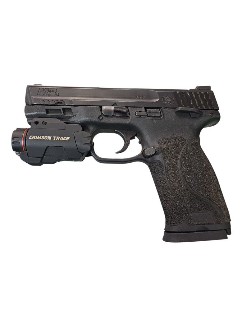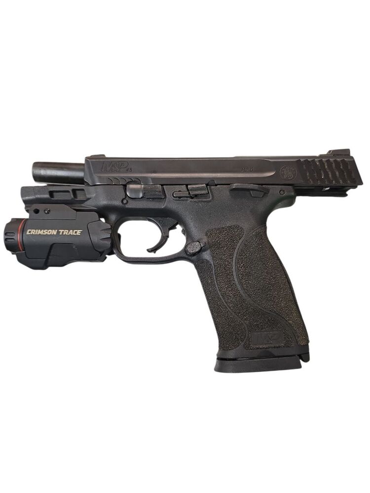 Unleash the power of the sleek, black Smith & Wesson Semi-Automatic M&P 45 M2.0 pistol.